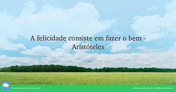 Pensar para seguir princípios, manter valores, refletir e evoluir com o que se passa, sempre evoluindo no sentido de pensar, agir, falar, e sentir tudo em consonância, e todos de acordo com as suas convicções, muito bem fundamentadas. Segundo Aristóteles, a felicidade consiste em fazer o bem. De fato, independentemente da situação externa em que nos encontramos, se estamos exercendo nossas virtudes, fazendo o bem, podemos sim ser felizes, ainda que não seja no modo padrão. Isso também não quer dizer que a vida que não segue o modo padrão seja uma bagunça e "vamos curtir", pelo o contrário, deve ser tão consciente e reta quanto. Viver a vida curtindo é um retrocesso do tamanho de um abismo, mas isso discuto em outra pauta.